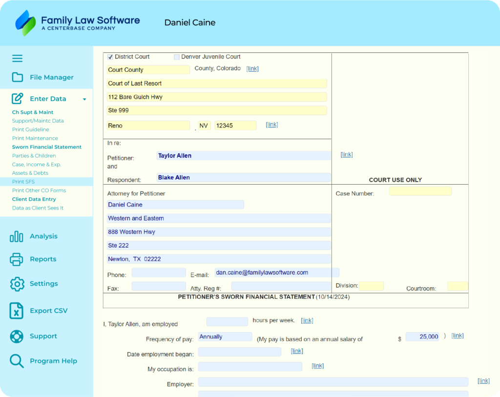 See why Colorado professionals prefer Family Law Software to efficiently & accurately complete financial analysis + support calculations for fast family law case resolution – in a single, cloud-based solution.