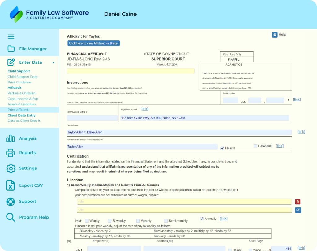 See why Connecticut professionals prefer Family Law Software to efficiently & accurately complete financial analysis + support calculations for fast family law case resolution – in a single, cloud-based solution.