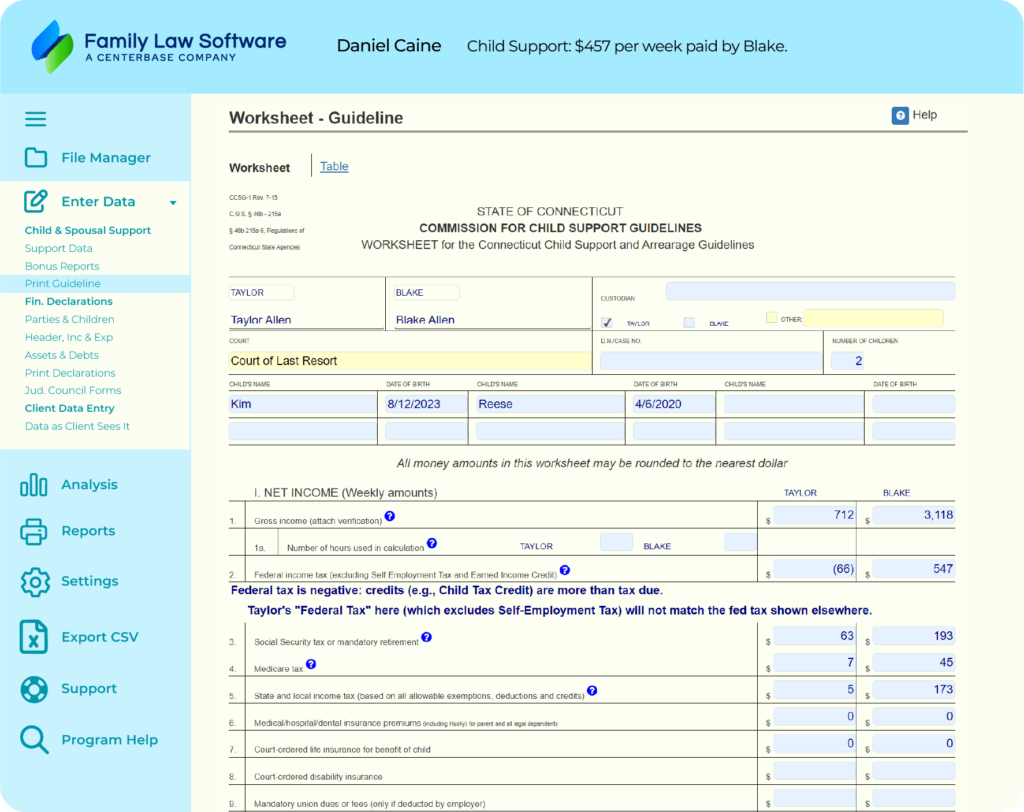 Family Services and many judges in Connecticut prefer Family Law Software for child support calculations.